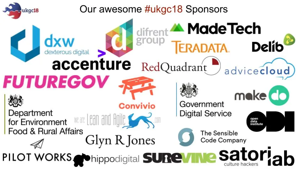 - Many thanks to @dxw for sponsoring the post-#ukgc18 drinks & nibbles! But once the that bar tab runs dry then you’ll have to buy your own :)